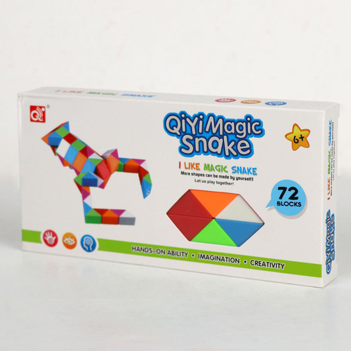 روبیک مار کای وای 72 قطعه یک روبیک ماری با کیفیت و باثبات است. این روبیک 72 قطعه مستقل دارد که هر کدام در 4 جهت قابل چرخش هستند. این نکته باعث می شود بتوان این مار را به انواع و اقسام اشکال تغییر حالت داد. اشکالی مثل پرنده، گربه، قلب، زرافه، قورباغه، اردک، گل و …با اندکی تمرین و استفاده از راهنماهای آموزشی قابل ساختن هستند که باعث می شود این روبیک در رشد خلاقیت و هوش بسیار موثر باشد.